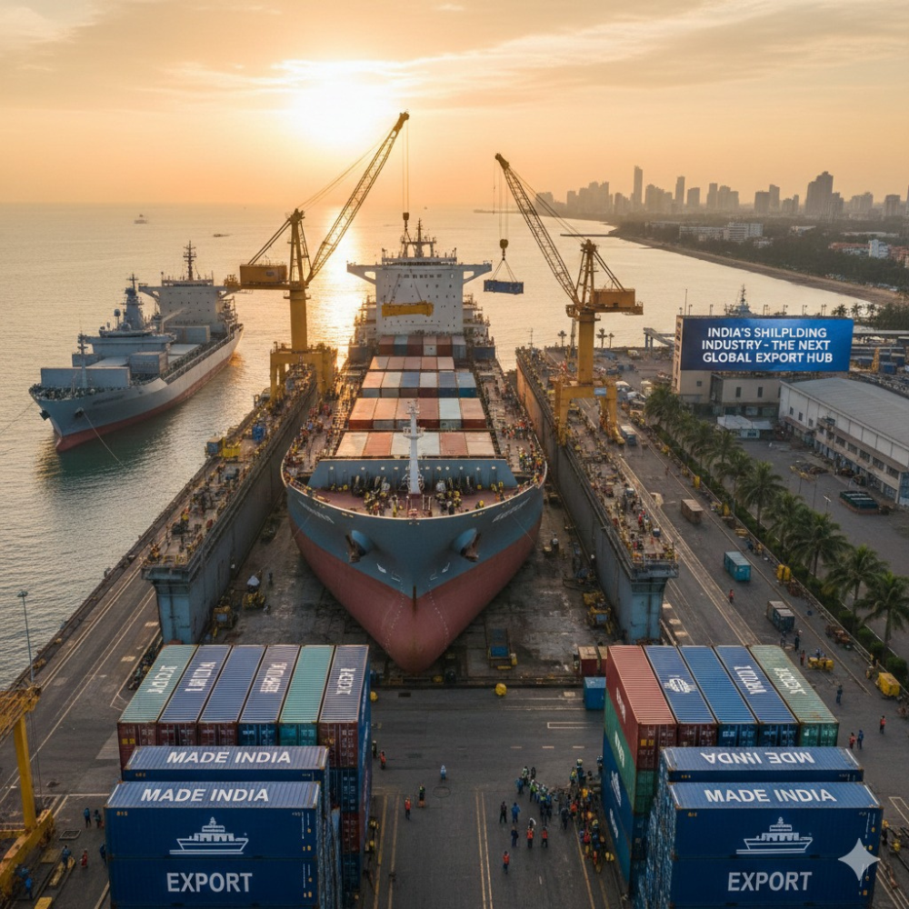 The shipbuilding industry in India is on the verge of becoming a strong growth area with export potential. Although India has a small presence in the global shipbuilding industry, the government is actively encouraging the industry through its policies. With its long coastline, qualified workforce, and increasing maritime trade, India has the potential to become a large global shipbuilding destination. As the demand for commercial and green ships rises globally, the shipbuilding industry in India can become the next big export opportunity for the country.